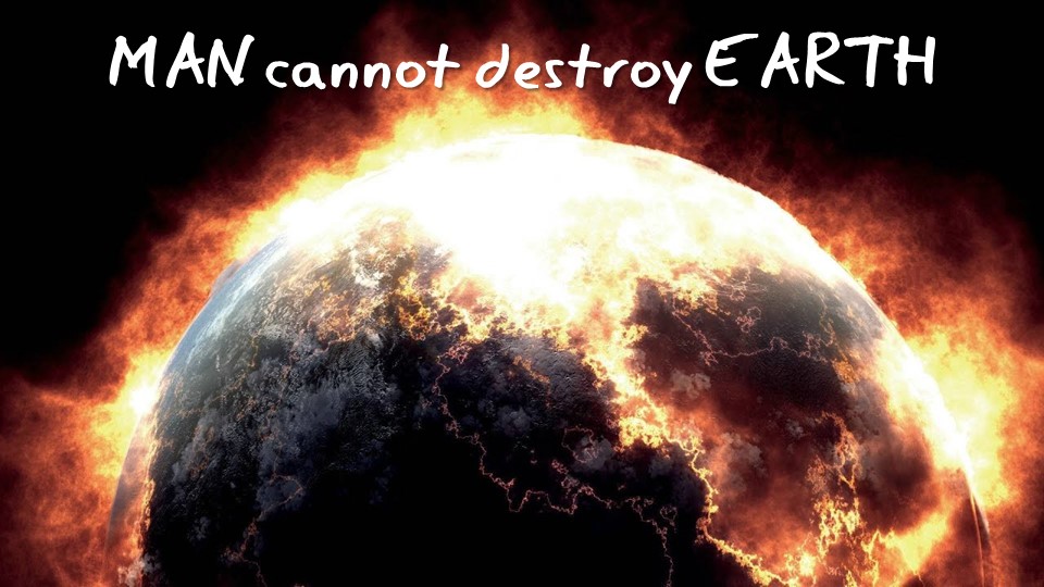 The philosophy behind the political movements of global warming is from the belief there is no God and that man is his own god. Imagine the tiny human speck of flesh having the immense power to destroy the earth. That is laughable at the highest level of an angel’s perspective. The pride of man is nothing considering he is made a little lower than the angels. Mankind moves about as tiny ships on the vast ocean of God’s creation with barely a ripple in the scheme of God’s creation. The Bible teaches the earth is reserved for the power of God and nothing man can do will change that. One day the world will burn up but not from the efforts of men but the will of the Creator who has reserved the earth and universe for fire. Man cannot destroy the earth. God will destroy the earth. Nothing man can do will change that. The elements are going to melt with fervent heat and dissolved. Praise God. He reigns and He is in control.