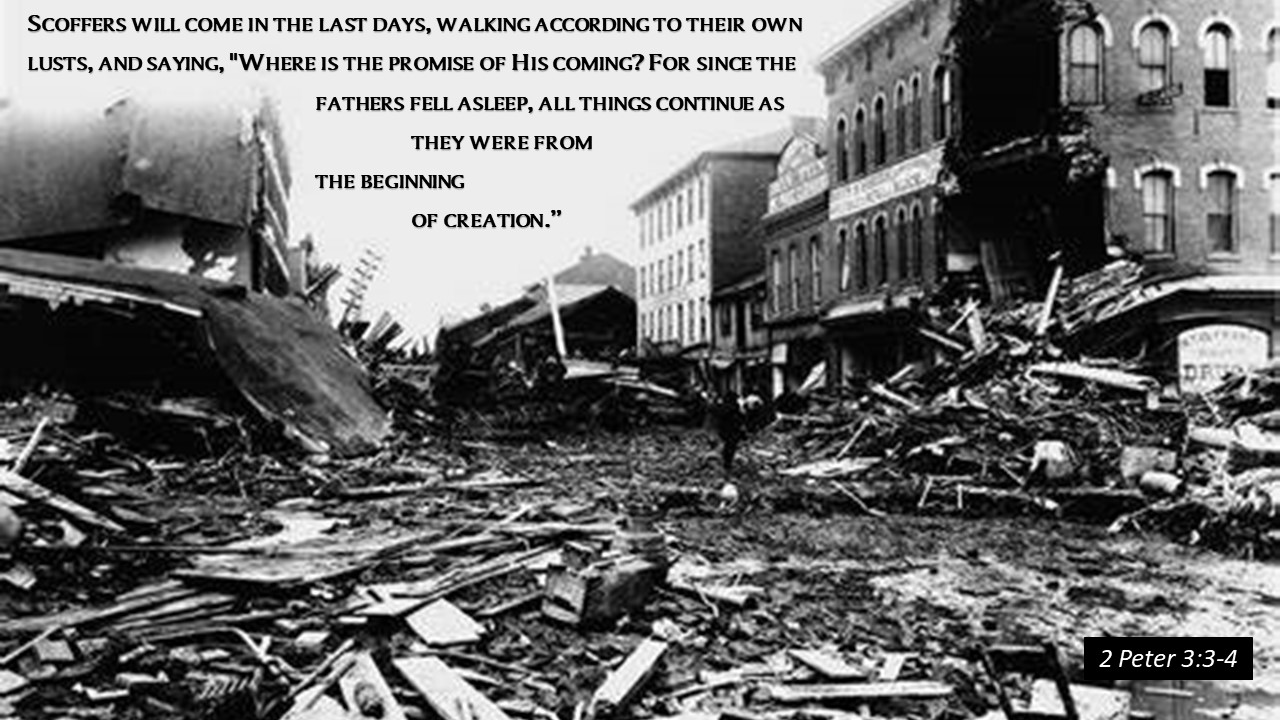 Beloved, I now write to you this second epistle (in both of which I stir up your pure minds by way of reminder), that you may be mindful of the words which were spoken before by the holy prophets, and of the commandment of us, the apostles of the Lord and Savior, knowing this first: that scoffers will come in the last days, walking according to their own lusts, and saying, “Where is the promise of His coming? For since the fathers fell asleep, all things continue as they were from the beginning of creation.” (2 Peter 3:1-4)