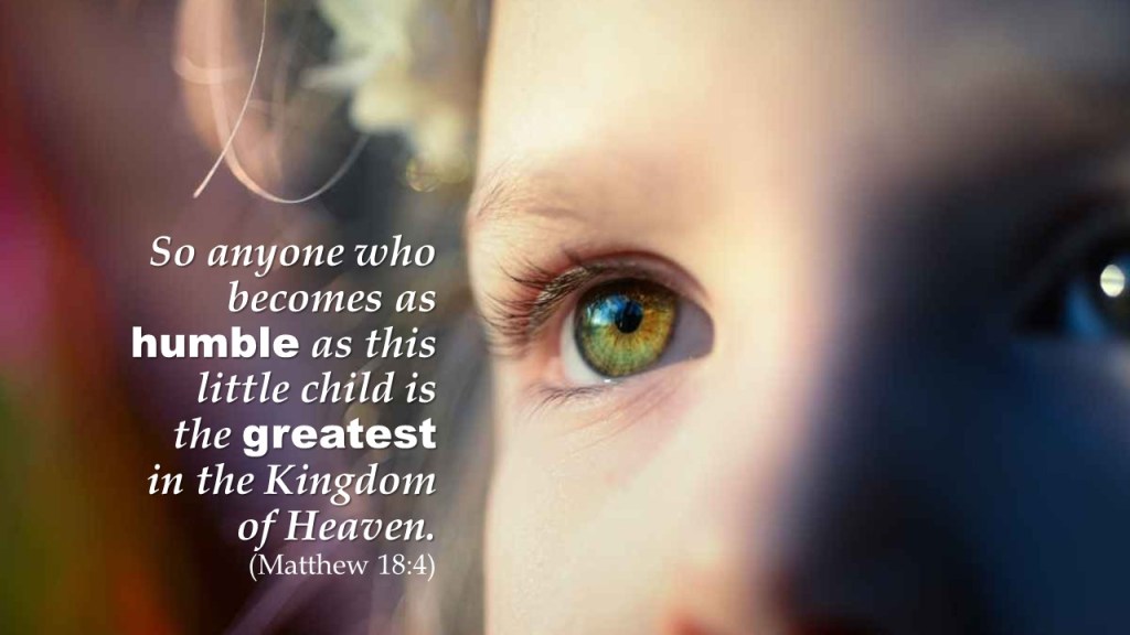 At that time the disciples came to Jesus, saying, “Who then is greatest in the kingdom of heaven?” Then Jesus called a little child to Him, set him in the midst of them, and said, “Assuredly, I say to you, unless you are converted and become as little children, you will by no means enter the kingdom of heaven. Therefore whoever humbles himself as this little child is the greatest in the kingdom of heaven. (Matthew 18:1-4)