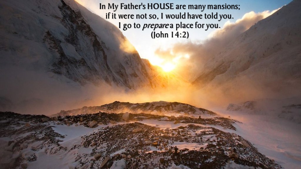 Let not your heart be troubled; you believe in God, believe also in Me. In My Father’s house are many mansions; if it were not so, I would have told you. I go to prepare a place for you. And if I go and prepare a place for you, I will come again and receive you to Myself; that where I am, there you may be also. (John 14:1-3)