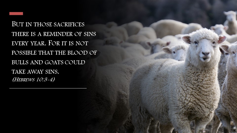 But in those sacrifices there is a reminder of sins every year. For it is not possible that the blood of bulls and goats could take away sins. (Hebrews 10:3-4)