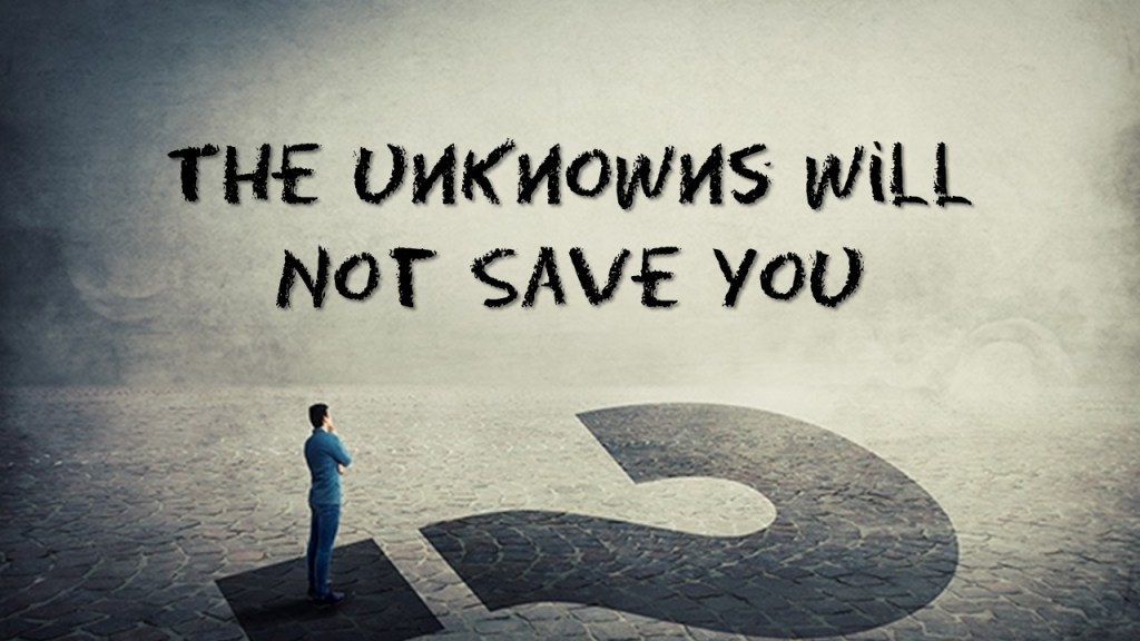 What do the unknowns tell the world about the will of God? The secret things belong to the Lord and while there are myriads of stories never told in the Bible, what is revealed is what saves. There are many unknowns, but these will not save a man. The majority of the life of Jesus is never preserved in writing, and yet the portion found in nearly 84,000 words contains the message of eternal life. Men can spend a lifetime speculating about the mysteries of scripture. Sadly, energy is wasted and lost if this is all a man can focus upon. The Bible contains everything a man needs to know to save his soul. Some questions will never be answered because they are not relevant, pertinent, and essential to change a soul from the darkness of sin to God’s light. What is revealed in the Bible will save a man. Read it to be wise. Believe it to be saved. Accept it as final. It is only what is known that will save us.