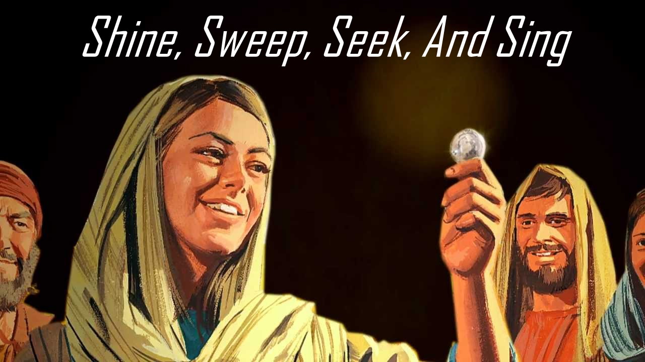 With the lamp shining brightly and the room well swept, the woman seeks for the lost coin. Her efforts are focused on one single purpose: find the one coin. She has treasured the nine coins, but she must find the one lost coin. After exhaustive searching, the coin is found. It matters not where the coin is found. Rather, the story reflects the worth of the coin and the extent of effort the woman puts forth to find just one lost coin. She cannot afford to lose one coin. The ten coins mean more to her than anything. She lights a lamp to SHINE a way to find the coin and SWEEPS the whole house so that she can SEEK for her one lost coin. Her efforts pay off, and the coin is found.