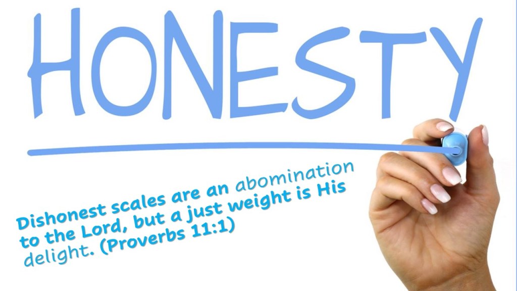 Dishonest scales are an abomination to the Lord, but a just weight is His delight. (Proverbs 11:1)