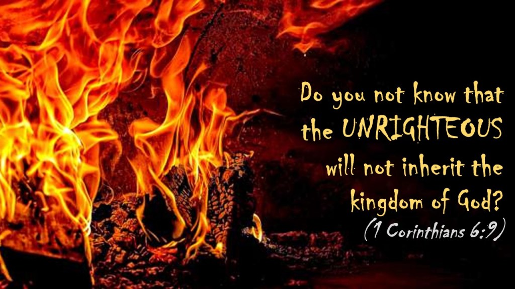 Peter said that some of Paul’s writings were hard to understand, and the untaught and unstable people will twist to their own destruction. That is not the case in the first letter to the saints at Corinth. There is clear and demonstrative language in Paul’s epistle to the Corinthians that cannot be missed. The world will muddy the word of God, bending truth to fit their pernicious ways, but that will not take away from the truth. Paul’s language is unambiguous, unmistakable, and unequivocal when he writes the unrighteous will not inherit the kingdom of God. There is no room for misunderstanding the message of the Holy Spirit. The reality of eternal damnation is not to be missed. Jesus taught that hell is real and the disobedient will be cast in the lake of fire and brimstone with no exceptions. Paul echoes the teaching of the Lord in showing that those who persist in sin will not find joy in death.