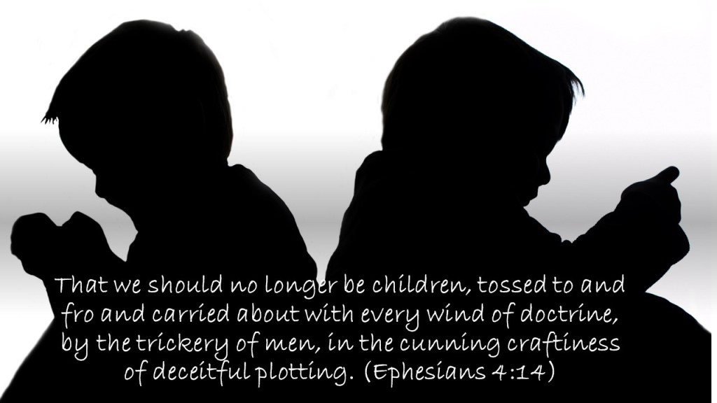 That we should no longer be children, tossed to and fro and carried about with every wind of doctrine, by the trickery of men, in the cunning craftiness of deceitful plotting. (Ephesians 4:14)