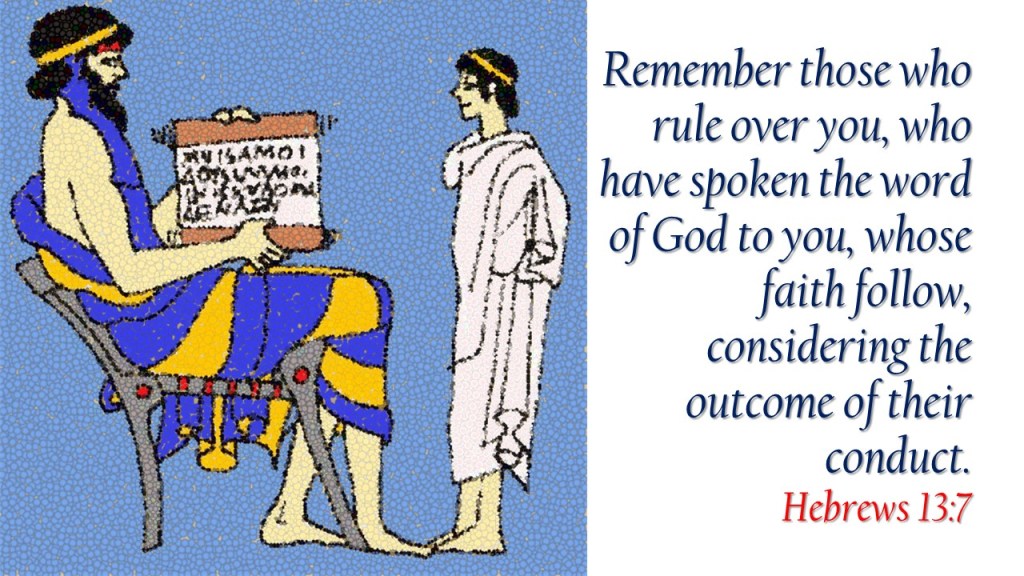 Remember those who rule over you, who have spoken the word of God to you, whose faith follow, considering the outcome of their conduct. (Hebrews 13:7)