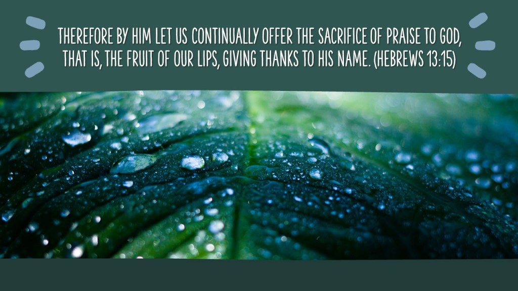 Therefore by Him let us continually offer the sacrifice of praise to God, that is, the fruit of our lips, giving thanks to His name. (Hebrews 13:15)