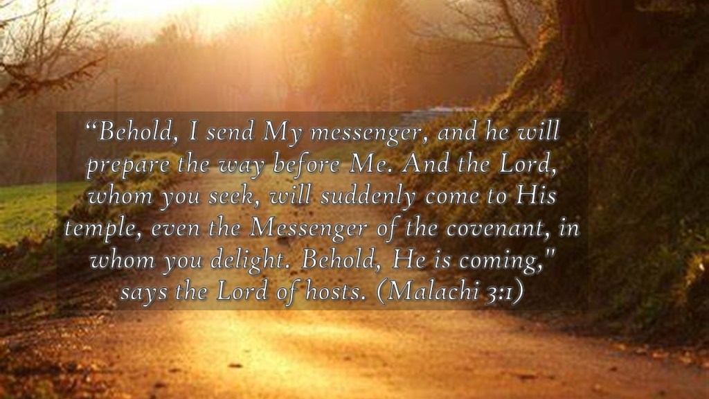 “Behold, I send My messenger, and he will prepare the way before Me. And the Lord, whom you seek, will suddenly come to His temple, even the Messenger of the covenant, in whom you delight. Behold, He is coming,” says the Lord of hosts. (Malachi 3:1)