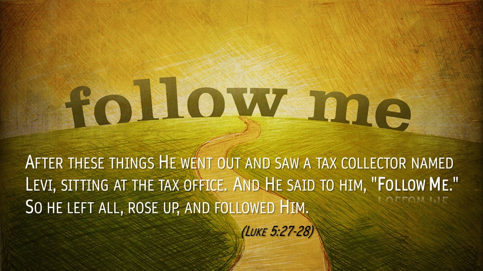 After these things He went out and saw a tax collector named Levi, sitting at the tax office. And He said to him, “Follow Me.” So he left all, rose up, and followed Him. (Luke 5:27-28)