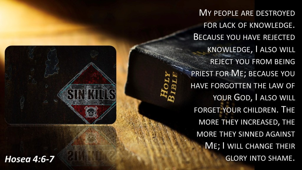 My people are destroyed for lack of knowledge. Because you have rejected knowledge, I also will reject you from being priest for Me; because you have forgotten the law of your God, I also will forget your children. The more they increased, the more they sinned against Me; I will change their glory into shame. (Hosea 4:6-7)