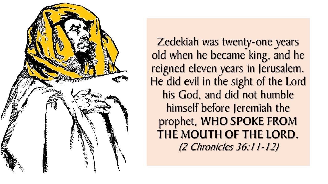 Zedekiah was twenty-one years old when he became king, and he reigned eleven years in Jerusalem. He did evil in the sight of the Lord his God and did not humble himself before Jeremiah the prophet, who spoke from the mouth of the Lord. (2 Chronicles 36:11-12)
