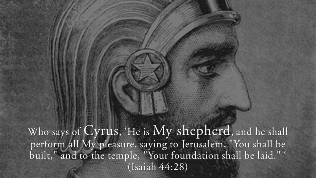 The Bible is proven to be a divine book by the content of its message and the fulfillment of prophecies far beyond the scope of human wisdom. Prognosticators can make wild guesses about future events and seldom hit the mark. The Bible not only tells of coming kingdoms (Assyria, Babylon, Greece and Rome in the book of Daniel) but can declare the name of a certain king who will do a certain thing during a certain time in the history of Israel. The mention of Cyrus as king is evidence of the power of the Lord God to prove He is the creator of the world, the ruler of all nations, and the author of an eternal message. Cyrus became a shepherd of the Lord to fulfill the scheme of redeeming men from the bondage of sin. The Lord uses pagan kings to carry out His work. Isaiah shows the Bible to be the word of God by declaring the name of a king yet born in a foreign and pagan land that would deliver the people of God. If God can declare the work of Cyrus years before he is born, consider what God has done through His Son Jesus Christ. Cyrus, the shepherd of God, died in 529 B.C. Jesus Christ became the sacrificial Shepherd who died and rose again. Isaiah’s hope in the Messiah is fulfilled in Christ. He is the King of kings and Lord of lords.