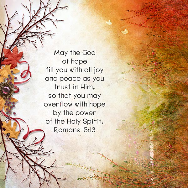 Now may the God of hope fill you with all joy and peace in believing, that you may abound in hope by the power of the Holy Spirit. (Romans 15:13)