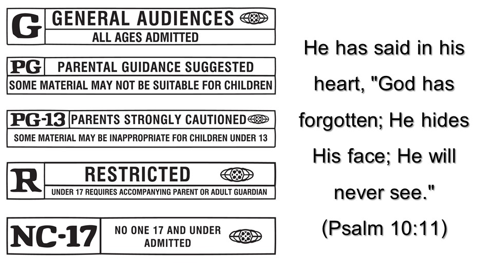 There has never been a time that sin has not dominated the world. The world has been under the sway of unrighteous language since the garden. God does not intend for His people to leave the world but to learn to live in the world. There are choices that can be made and must be made. Walking through Walmart and hearing foul language may not be controlled, but what we choose to watch is entirely under our control. The fool will not make a distinction. Godly hearts will make a choice and make a decision. God will not forget; He will not hide His face and He will not close His eyes.