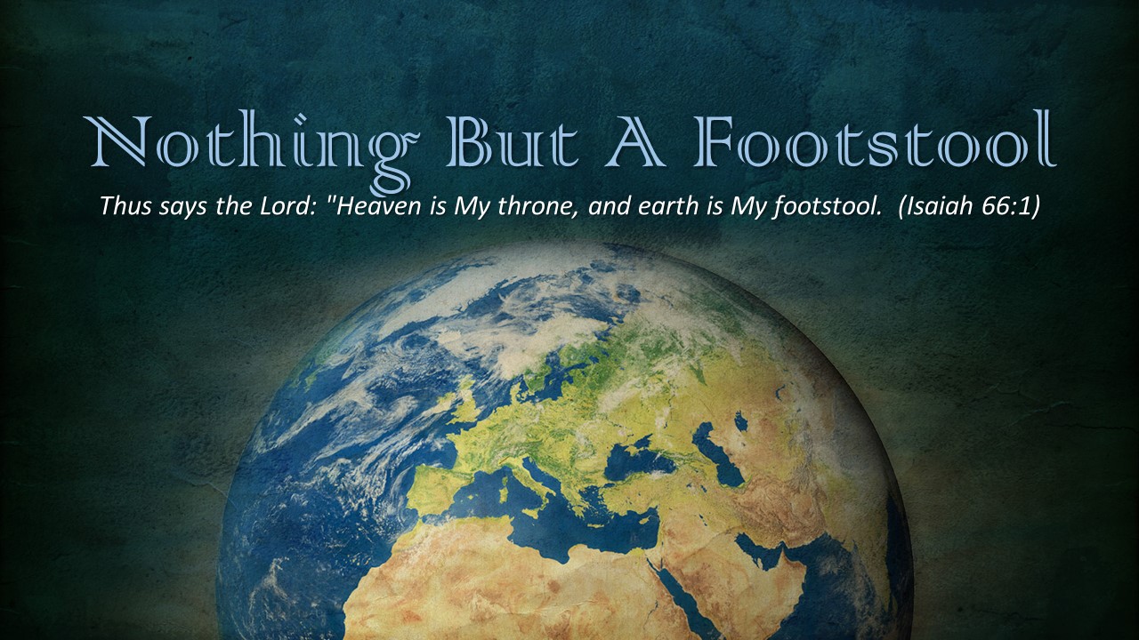 A footstool is a low stool for resting the feet on when sitting. The function of the footstool is either as furniture or support used to elevate the foot. It is a secondary piece of furniture that serves more a function than a necessity. At its best, a footstool is a small, insignificant but useful tool to rest a foot upon. To this figure, the Lord draws attention to the expanse of the earth where all men dwell. The angels are bemused by the pride of man as the earth is a vast place for men to inhabit and yet it serves as nothing more than a footstool in the presence of God. There is no comparison to the magnitude of the Lord God and the existence of a man. God can hold the universe in His hand. A man can barely hold a clump of dirt in his.