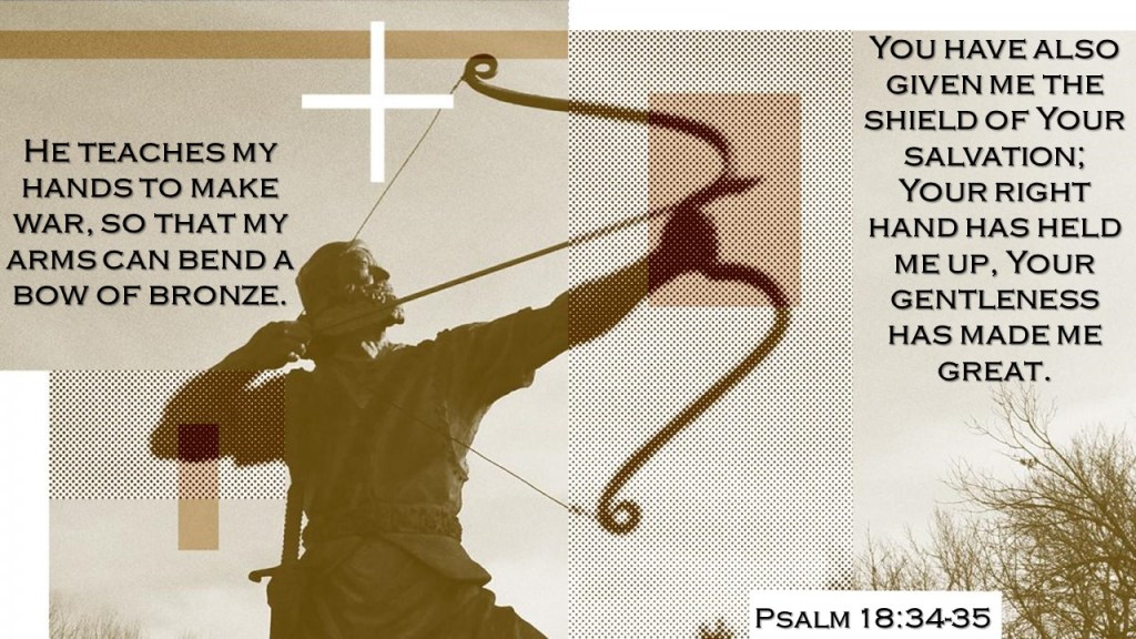 He teaches my hands to make war, so that my arms can bend a bow of bronze. You have also given me the shield of Your salvation; Your right hand has held me up, Your gentleness has made me great. (Psalm 18:34-35)