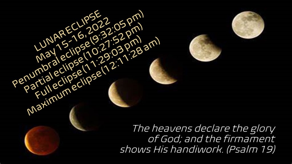 Skeptics of the Bible use the same mathematics created by God to determine events of the heavenly bodies with such precision they include the hour, minute, and second of the event. When a man denies God created the world and then declares the mathematical affirmation of a singular event, he becomes a fool that does not know God. How can a world formed out of chaos implode itself into an organism of continual perfection that can be charted by the annals of time, whether past or present? The lunar eclipse is measured with exacting precision because the Creator ordained the events in the beginning. Adam and Eve would have seen a lunar eclipse in their lifetime (quite a few in 930 years). The moon turning dark of ancient times is the same moon seen in the eclipses of modern times. God’s handiwork declares His power, glory, and majesty. When the moon turns dark, the light of God shines brilliantly.