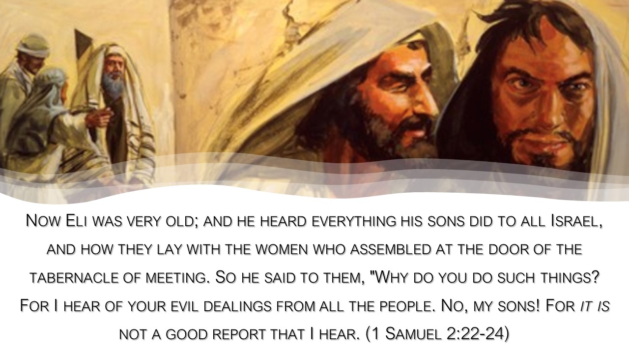 The role of the high priest was a significant part of the religious landscape of Israel. Tragically, Eli failed as a father to his very wicked sons. The Holy Spirit says the sons of Levi were very corrupt. They would take sacrifices of the people for themselves by force. The sin of the young men was very great before the Lord. Serving as priests, they abhorred the offering of God. Incredibly, their sins had a greater magnification in the eyes of the Lord. Eli knew his sons were seducing the young women who assisted at the entrance of the Tabernacle. Priests of God engaging in sexual immorality at the door of the house of God. The sons of Eli were vile, and he did nothing about it. On one occasion, he talked them to death, to no avail.