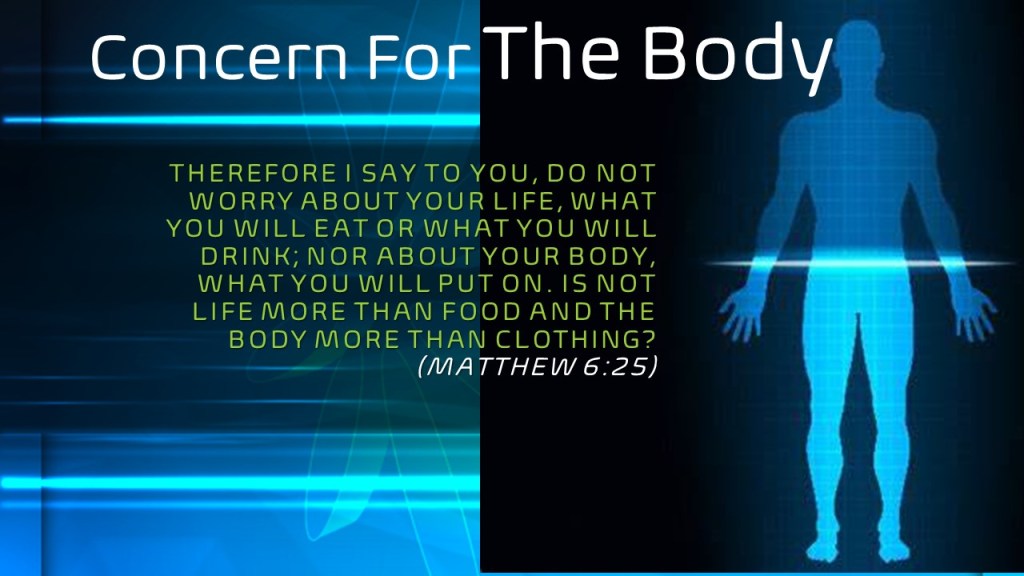 Therefore I say to you, do not worry about your life, what you will eat or what you will drink; nor about your body, what you will put on. Is not life more than food and the body more than clothing? (Matthew 6:25)