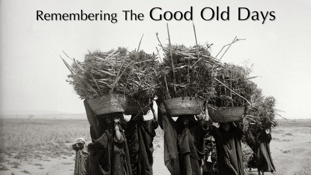 It is easy to dwell in the past and believe the former days are better. For Israel, the latter days of their time in Egypt were filled with the harsh dominion of taskmasters. When they complained to God, they tried to act as if the former days were glorious. They wanted to recreate their suffering as a time of great feasting. Nothing was further from the truth. The fickle hearts of people can complain to God with their mouths full. Trying to think of days gone by as better denies the glory of God, and for all He has done. Living in the past – clouds the mind to see the power of God. It is not a good idea to drive using the rearview mirror. More often than not, the good old days are not as wonderful as imagined.
