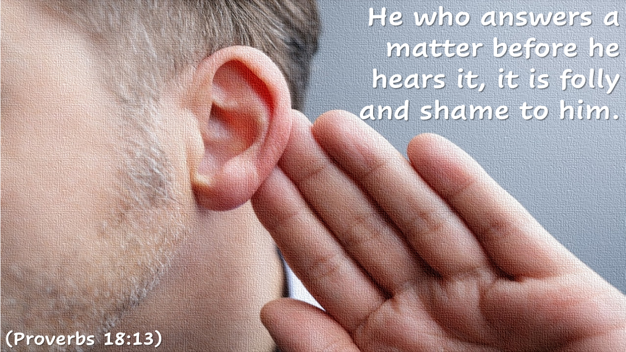 He who answers a matter before he hears it, it is folly and shame to him. (Proverbs 18:13)