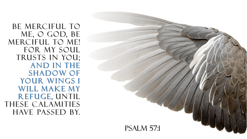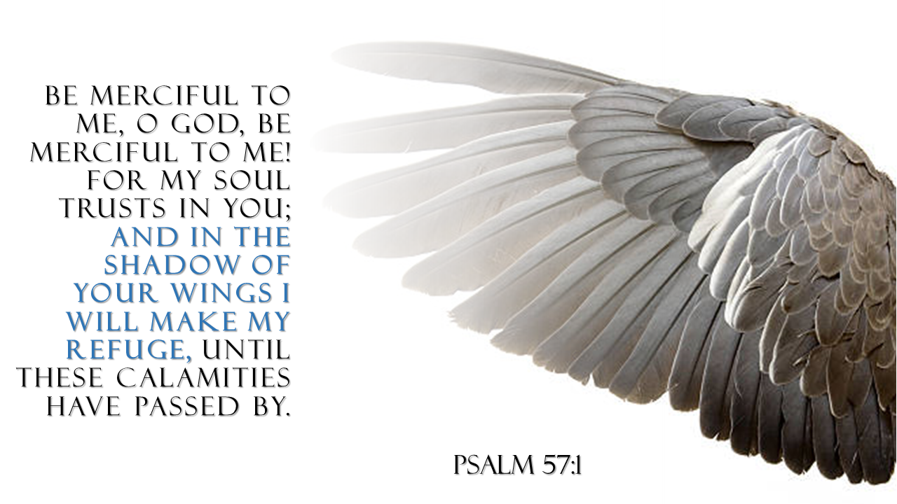 (To the Chief Musician. Set to “Do Not Destroy.” a Michtam of David when He fled from Saul into the cave.) Be merciful to me, O God, be merciful to me! For my soul trusts in You; and in the shadow of Your wings I will make my refuge, until these calamities have passed by. (Psalm 57:1)