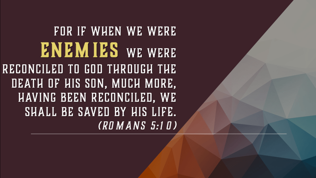 The enemy of God is now the child of God. As a child of God, eternal life is given. There is no more wrath or condemnation to those who are in Christ. Saul of Tarsus faced the wrath of God for the wickedness of his life and was an enemy of God. Through the grace of the Lord and Saul’s obedience to the command of God, Saul became a child of God. He would later call himself the worst of sinners, but he was not alone. All men are enemies of God. Through the grace of God, the enemy becomes the child.