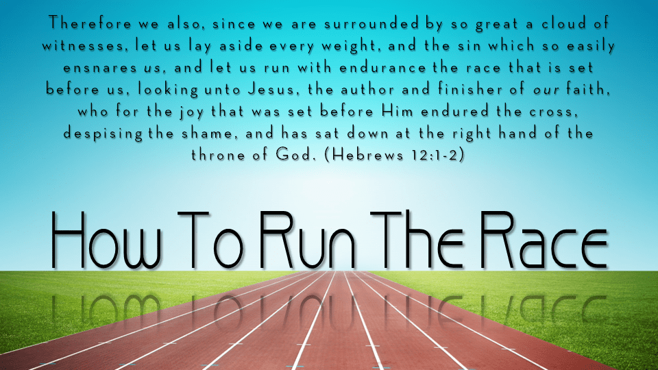 Running is hard and exhausting. To run the Christian race requires running. This is not a cakewalk or a stroll. There is running involved in the actions of the Christian. With that running comes endurance and perseverance. Having a spirit of faith and devotion to God, the Christian runs with purpose and the fortitude to run the entire race without giving up. Many will be the time when the spirit becomes discouraged. Don’t give up, and do not stop running. Look to Jesus as the hope of what is found in eternal life and the joy of heaven. He ran His race and lived without sin. All sin and fall short of the glory of God, but the Christian is a runner who keeps his focus on Jesus Christ and runs away from the world.