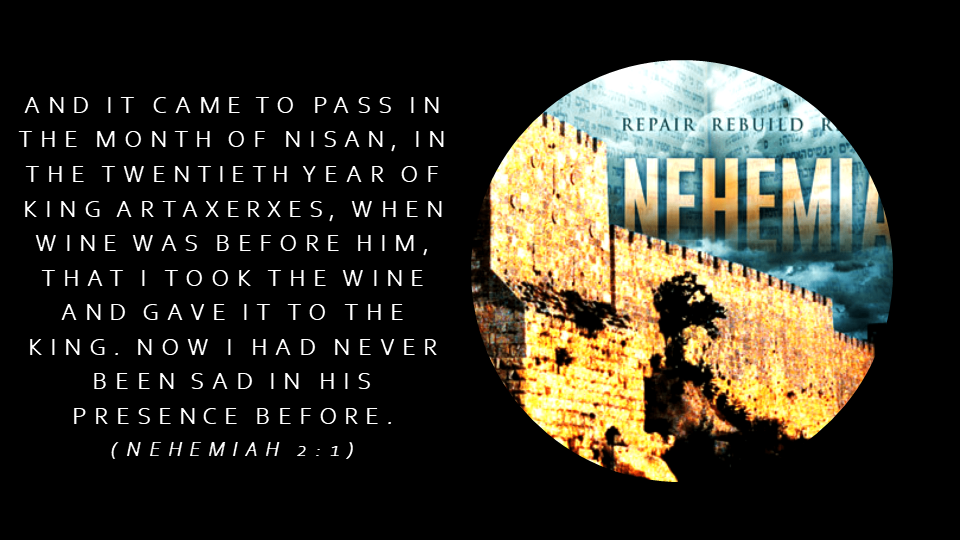 And it came to pass in the month of Nisan, in the twentieth year of King Artaxerxes, when wine was before him, that I took the wine and gave it to the king. Now I had never been sad in his presence before. (Nehemiah 2:1)