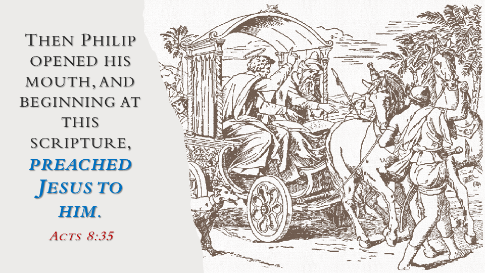 Then Philip opened his mouth, and beginning at this scripture, preached Jesus to him. (Acts 8:35)