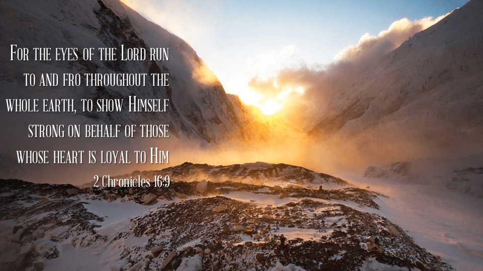 For the eyes of the Lord run to and fro throughout the whole earth, to show Himself strong on behalf of those whose heart is loyal to Him. In this you have done foolishly; therefore from now on you shall have wars. (2 Chronicles 16:9)